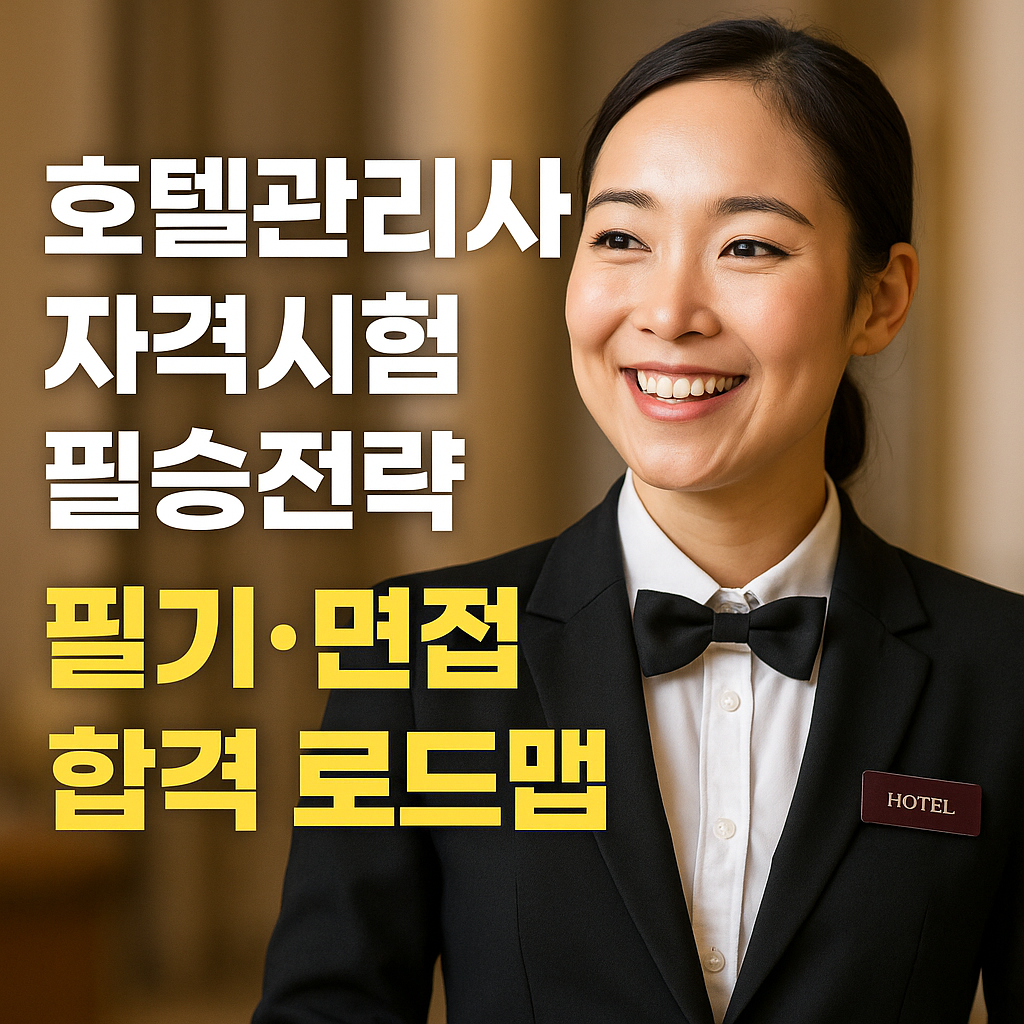 호텔관리사 자격시험은 문화체육관광부가 소관하고, 한국산업인력공단이 시행하는 시험입니다. 응시자격은 호텔 관련 전공 학위자, 자격증 소지자, 일정 경력 보유자로 한정되어 있으며, 시험은 필기(객관식)와 면접으로 나누어져 있습니다. 합격 시 호텔 객실·경영관리 업무에 대한 전문성을 공인받을 수 있습니다. 💡
